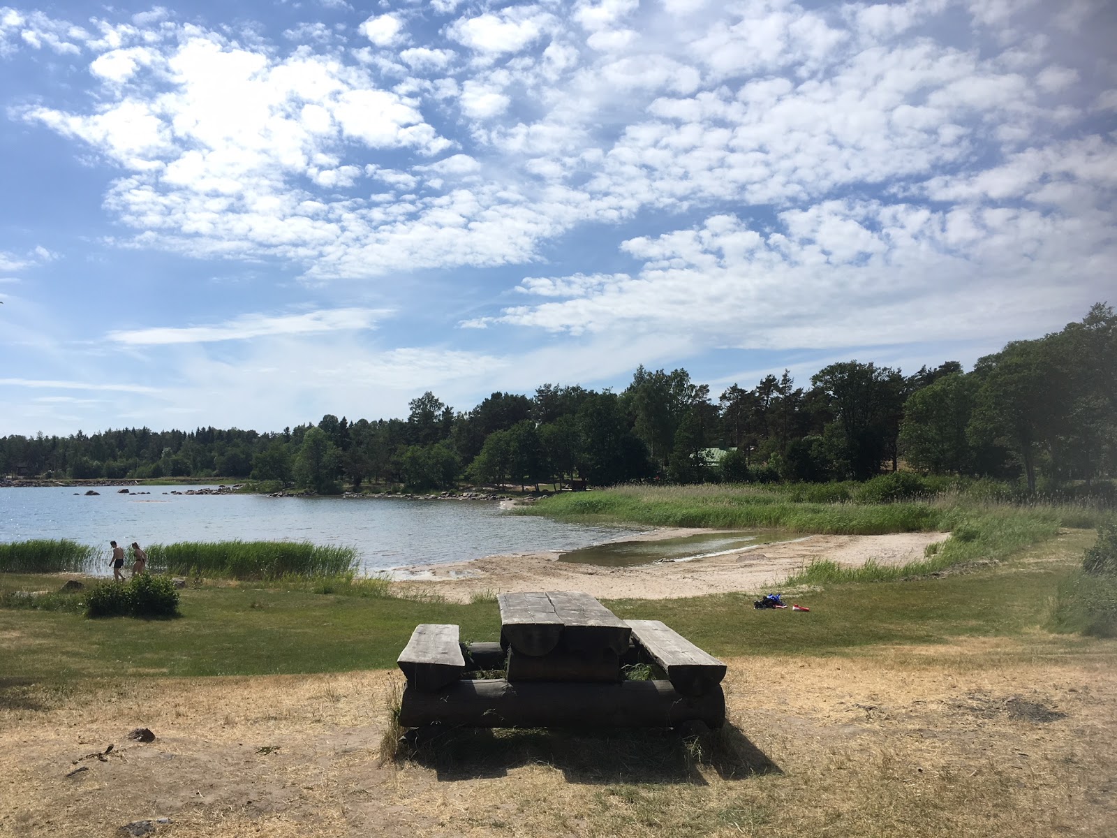 Leiripäätöksen jälkeen lähdimme lossilla takaisin ja päätimme pysähtyä Bomarsundin linnoituksille leikkimään ja uimaan. Bomarsundin alue on valtava 870 hehtaarin muinaismuistoalue, joten tänään valloitimme vain pienen osan siitä. Aluehan on siis ilmainen! Ensimmäisenä mentiin uimaan, ja tätä uimarantaa voin toden teolla suositella! Ihanaa hiekkaa, lämmintä vettä ja matalaa jatkuu pitkään – eli tosi mahtava paikka myös perheille joissa on vielä pieniä lapsia. Rannalla on huussit, pukukoppi ja ruokailuryhmä. Nurtsille voi levittää viltin tai sitten ottaa kallioisemmalla alustalla aurinkoa. Ja näkymänä nuo hienot linnoitukset!