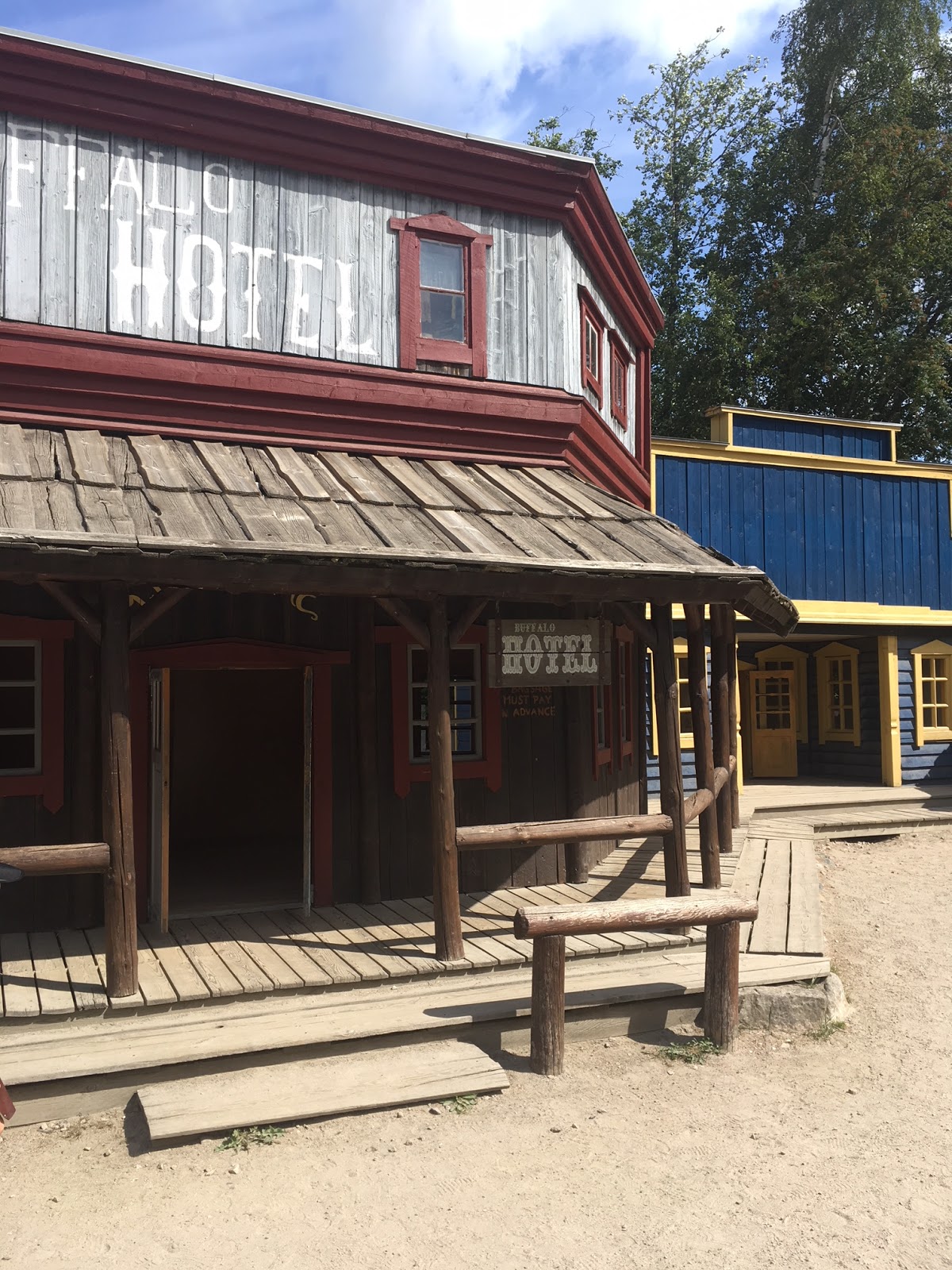 Mitä puistosta sitten oikein löytyy? Yksinkertaisesti Villi länsi! Alueella kävellessä tuntuu todella kuin olisi astunut johonkin vanhaan länkkärielokuvaan. Monet puiston vierailijoista olivat myös pukeutuneet ruutupaitoihin ja cowboy-hattuihin – myös monet aikuiset. Monilla lapsilla oli myös mukanaan nallipyssyjä, joten paukkeeseen oli vain päivän aikana totuttava ja illalla soi korvissa. Alueella myydään myös teemaan sopivia asusteita ja leikkipyssyjä, jos omat ovat unohtuneet kotiin tai haluaa päästä tunnelmaan konkreettisemmin.