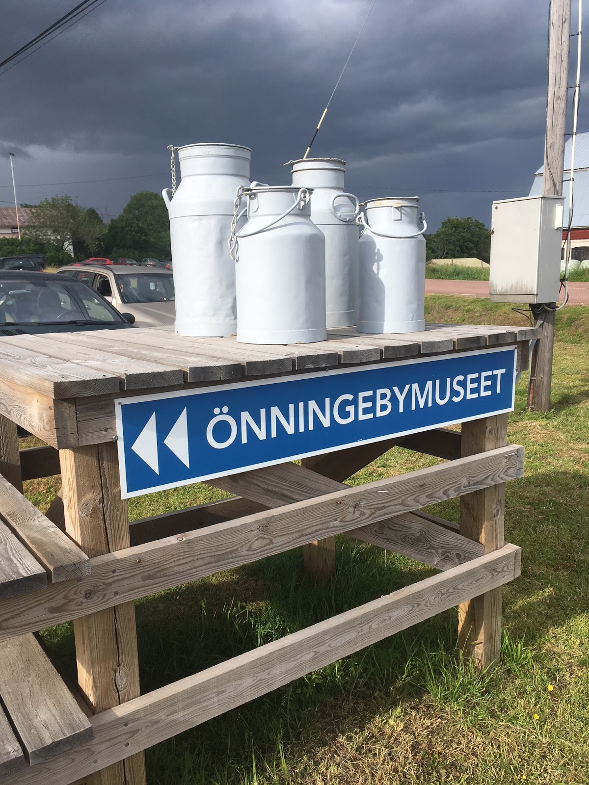 Sunnuntaina silmiini osui mainos takakonttikirppiksestä. En edes tiedä onko se oikea termi suomeksi, mutta tiedättehän, sellainen kirpputori ulkosalla missä ihmiset pystyttää myyntipöytänsä autonsa takakontin eteen. Önningebyn museon pihalla semmoinen olisi nyt heinäkuussa siis joka maanantai kello 18.00 – 20.00. Olemme ajaneet kymmeniä (varmaan satoja) kertoja tuon museon ohi. Ja monen monta kertaa olen miettinyt, että sinne pitäisi pysähtyä. Nyt viimein sain itseni tyttären kanssa matkaan. Ja pitää kyllä myöntää, että yllätyin täysin. Kun museon ohi ajelee, näkee hienoja vanhoja rakennuksia. Ja kun sitten lopulta astuu yhden rakennuksen sisälle, sinne missä taidenäyttely sijaitsee, niin ei tahdo millään uskoa, että tällainen aarre täältä taas löytyi, meidän saarelta.